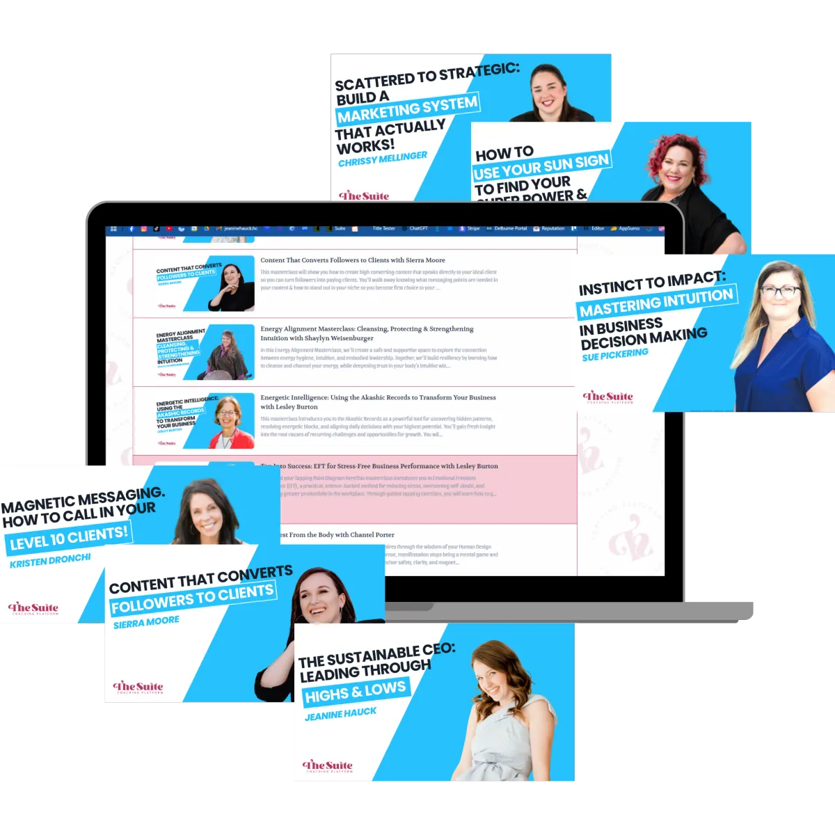 Learn directly from worldwide experts in business, mindset, and energetics with monthly live masterclasses and an ever-growing on-demand vault. From Magnetic Messaging to Energy Alignment to Scaling with Soul, every session is taught by leaders who’ve walked the path — and packed with tools you can apply the same day.