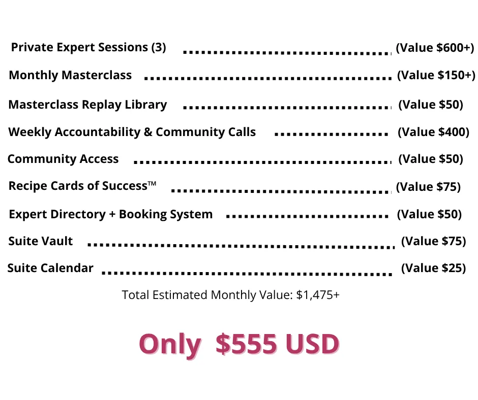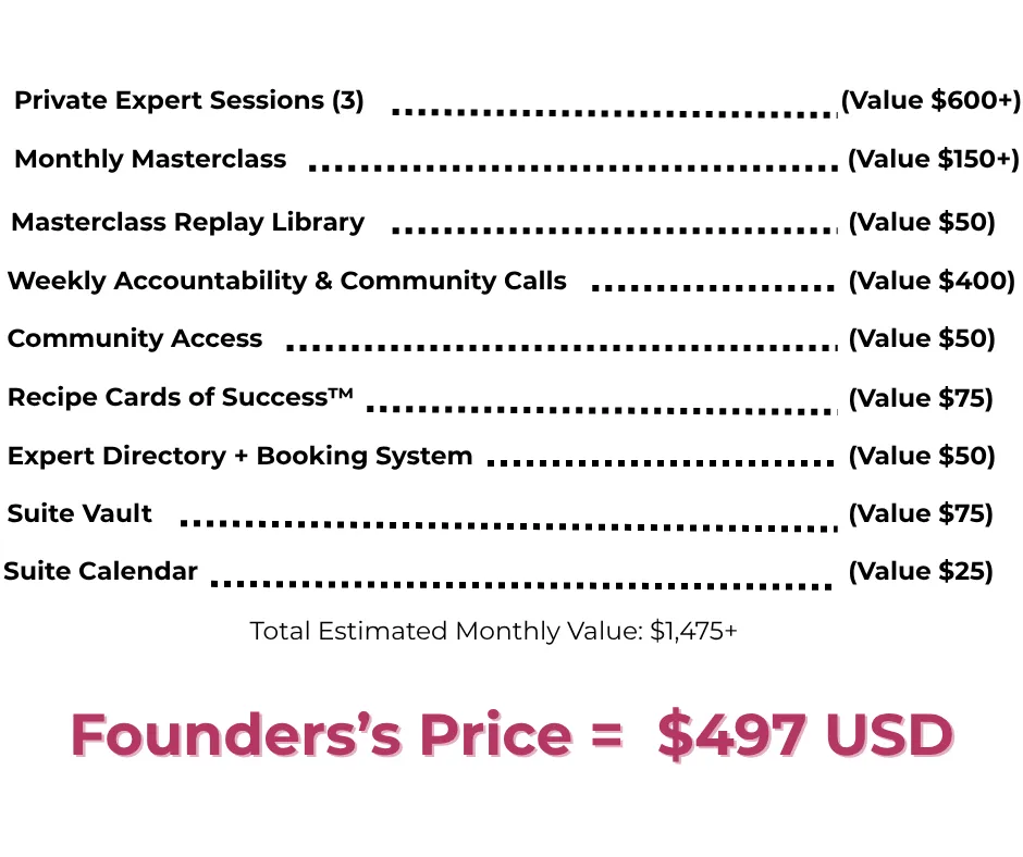 The first members to join The Suite™ by November 14th will unlock LIFETIME access for only $497/month (regularly $555).